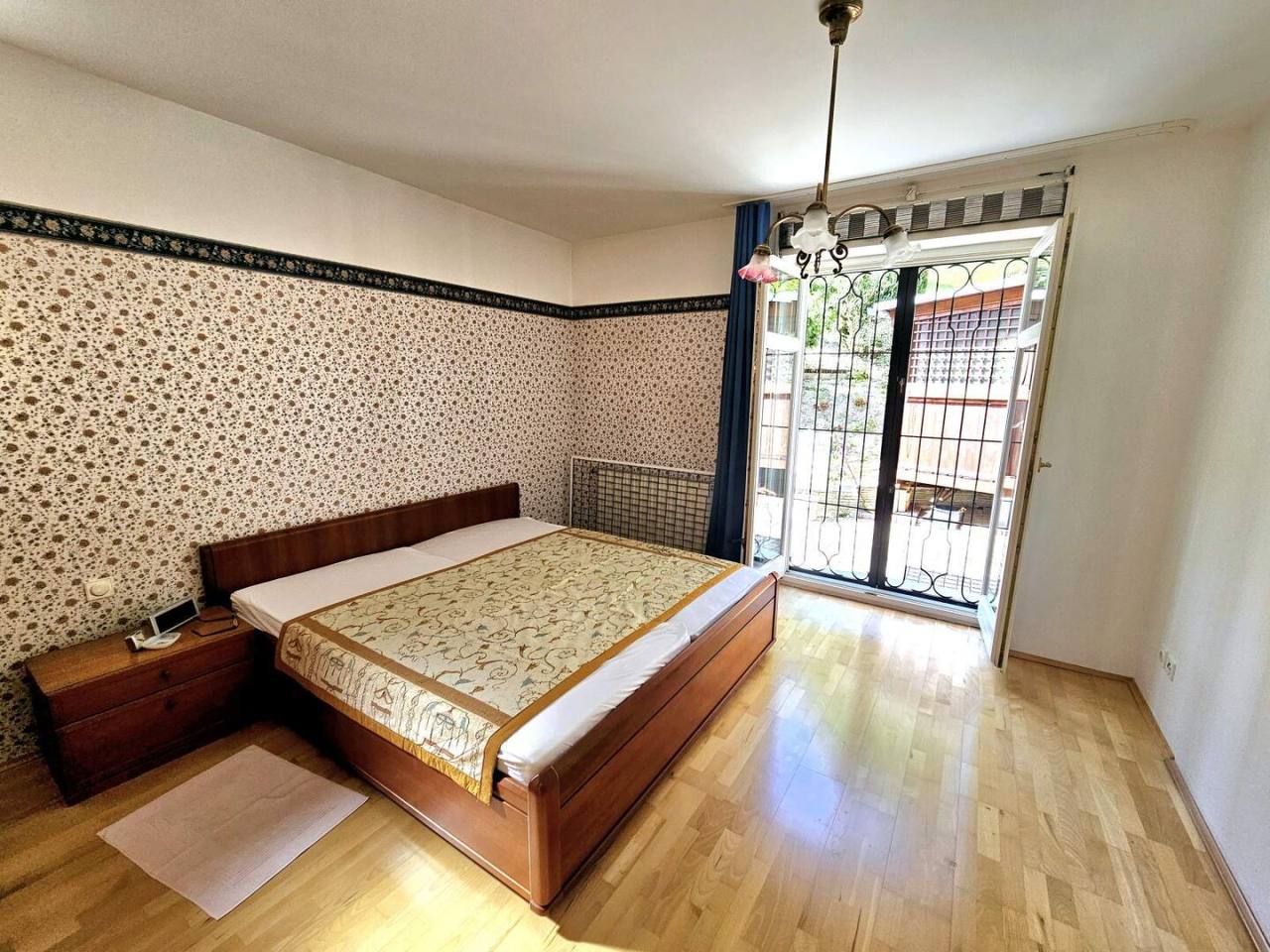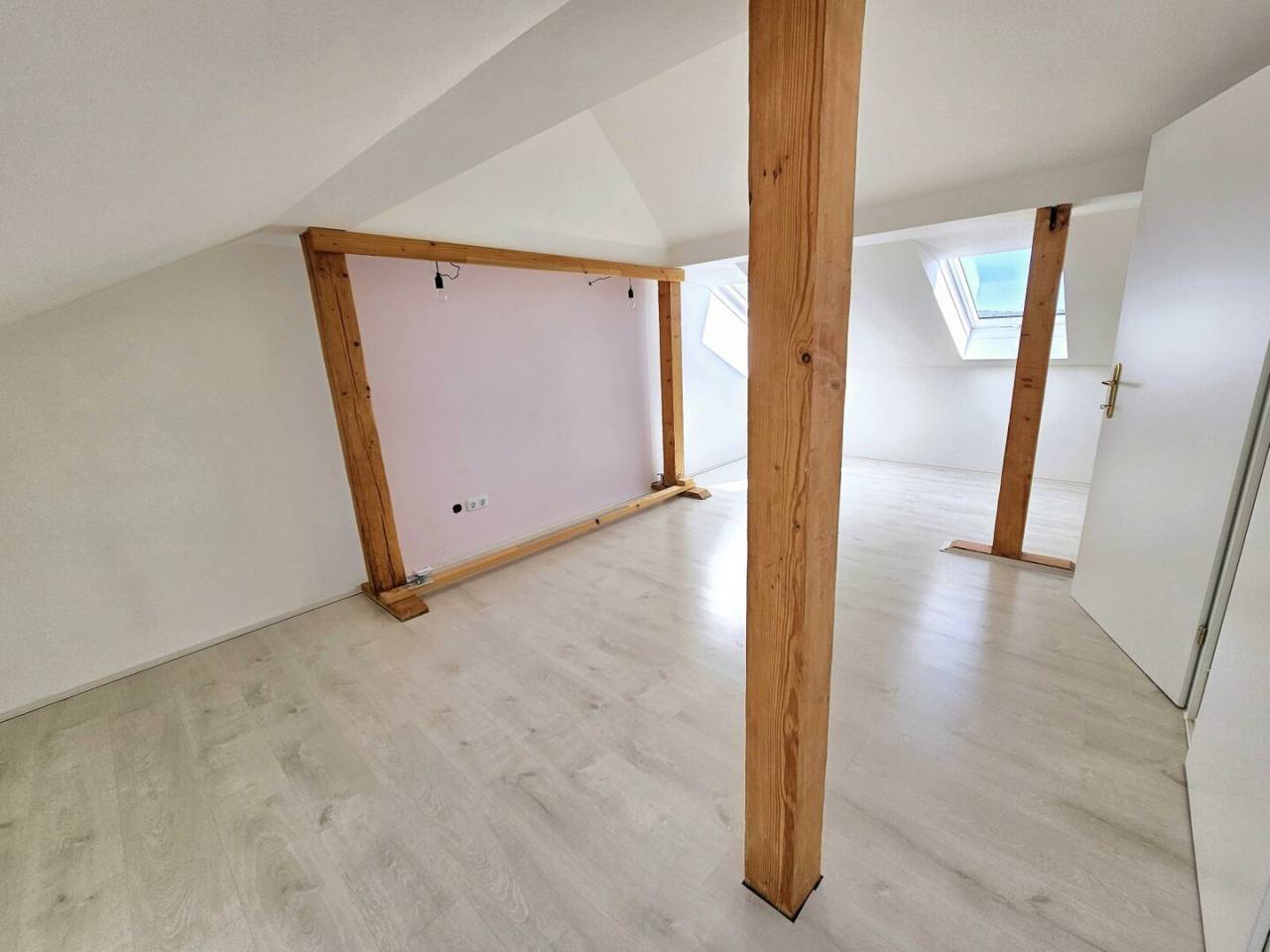 في الطابق العلوي، تبرز غرفة معيشة فسيحة بإطلالة بانورامية على فيينا، إلى جانب غرفتي نوم أنيقتين مع خروج مباشر إلى تراس الحديقة، ومطبخ كبير مع منطقة طعام، إضافة إلى حمّام فاخر بإطلالة خلابة على المدينة.