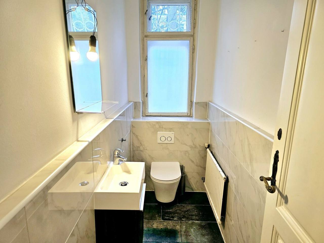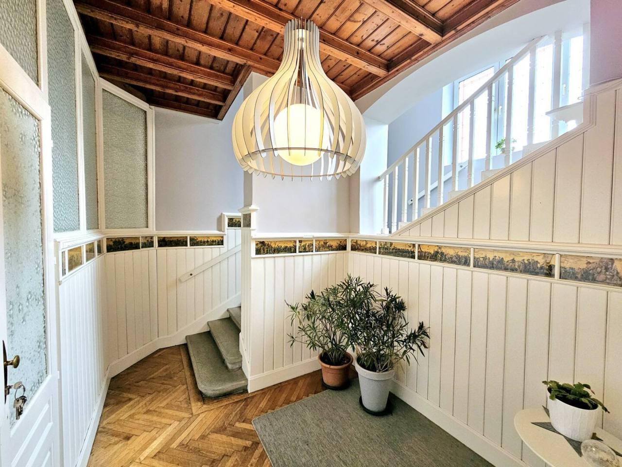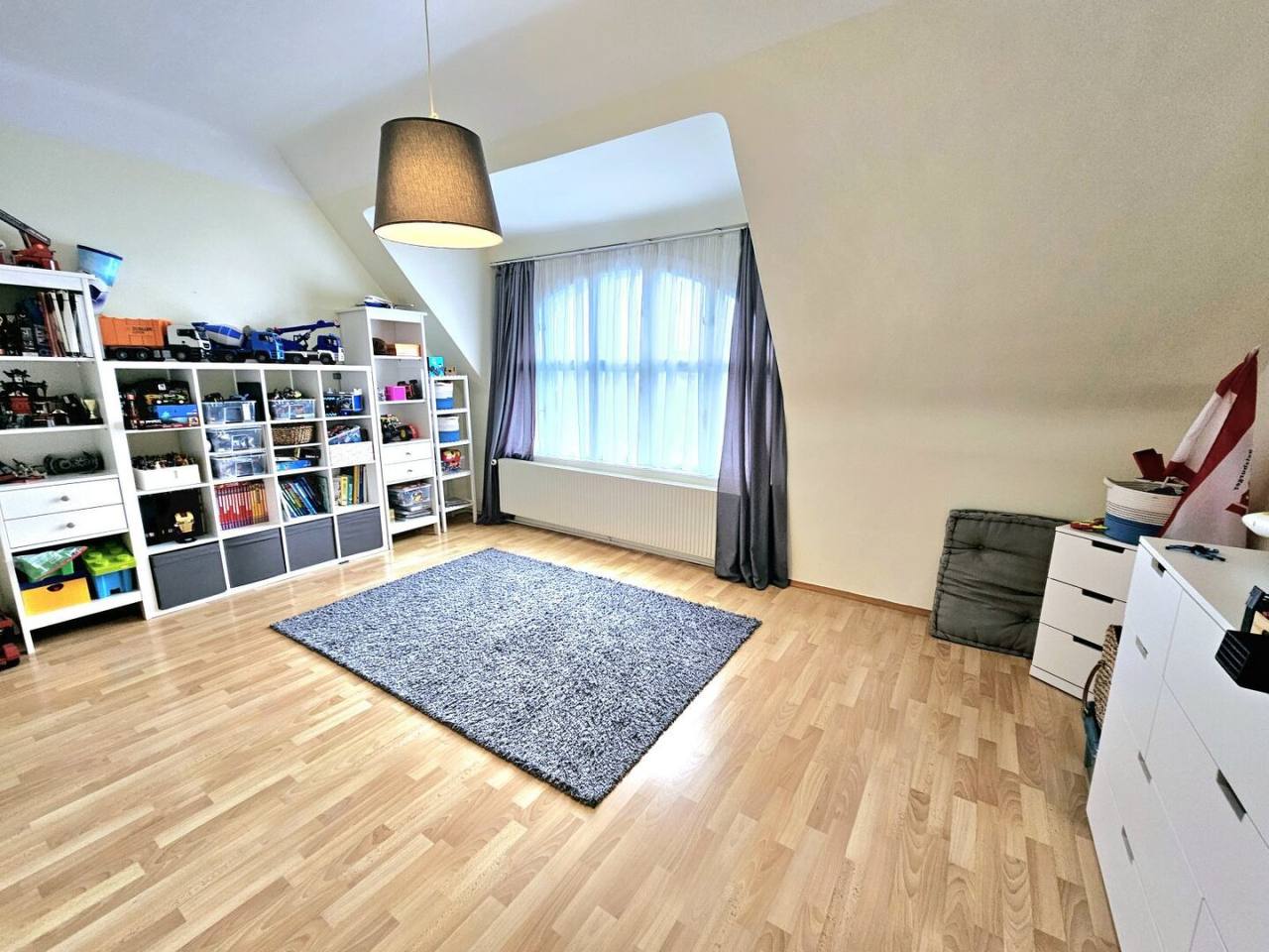 • العلّية (جزئيًا مُهيّأة): غرفتا نوم، حمّام ومرحاض، وهي متصلة مباشرةً بشقّة المالك وتُستخدم معها. ما يزال هناك إمكان توسعة كبير بنحو 80 م² إضافية في مساحة السقف، مع إطلالة بانورامية مذهلة على فيينا.